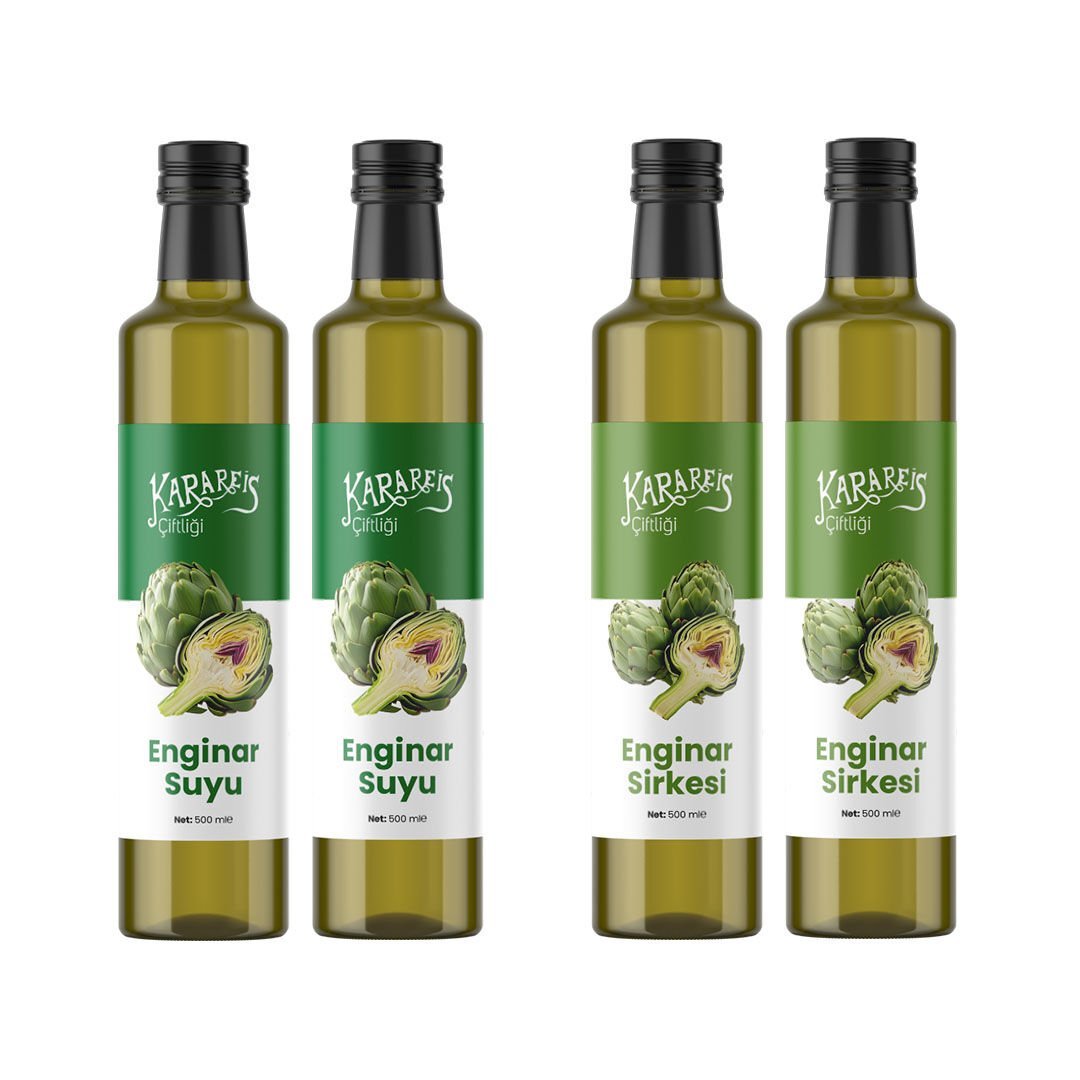 4'lü Set - 2 Enginar Suyu 500 cc, 2 Enginar Sirkesi 500 cc