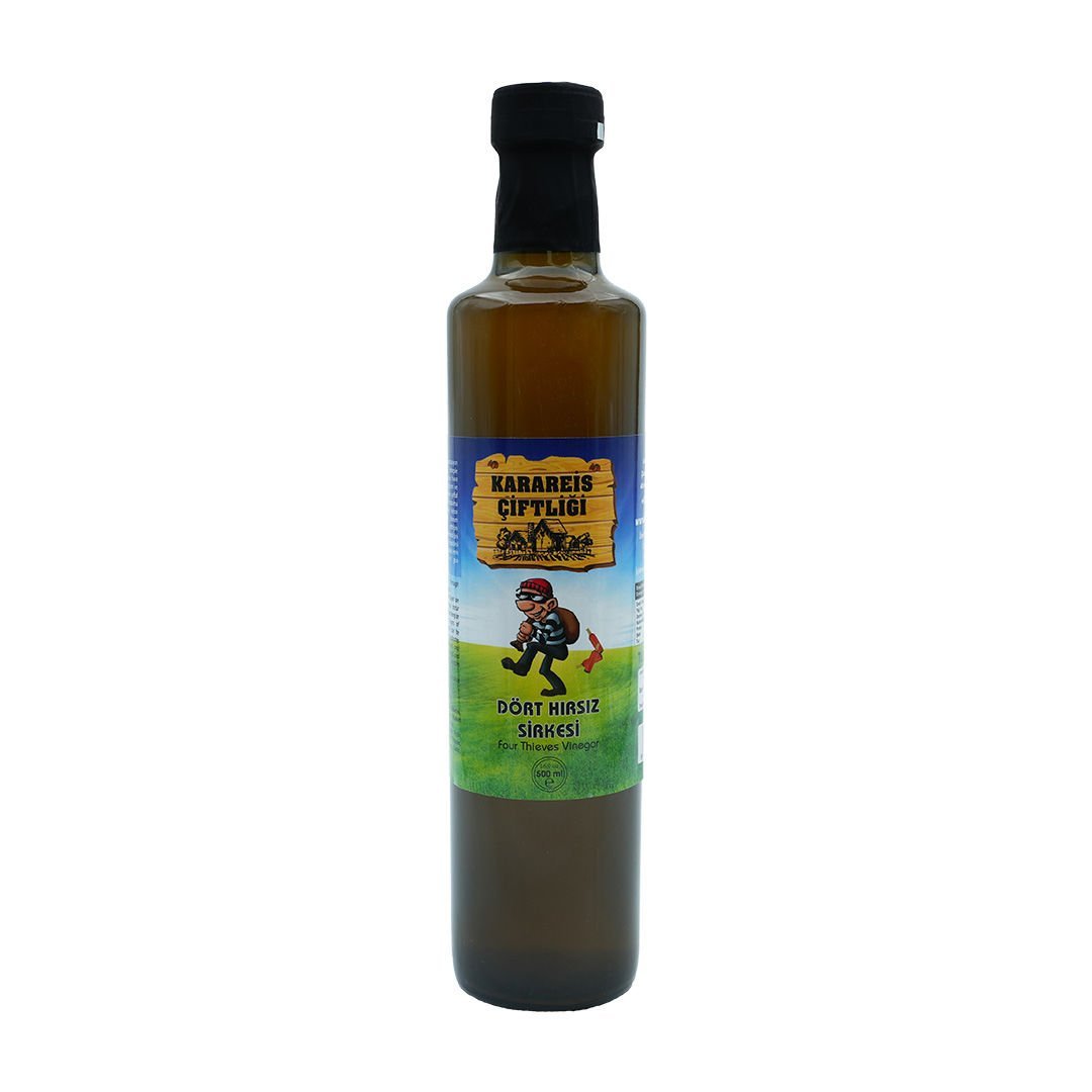 Dört hırsız sirkesi içerisinde acı/normal pelin otu,karabiber, nane, biberiye, sedefotu, adaçayı, lavanta, eğir, tarçın, karanfil, sarımsak gibi bitkileri bulundurur.