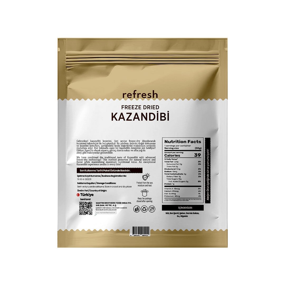 Geleneksel lezzet modern teknolojiyle buluştu. MARTİN BROTHERS FOOD’un özel freeze-dry yöntemiyle ürettiği Kazandibi, klasik tatlı keyfini hafif ve çıtır bir doku ile sunar. Dondurarak kurutma işlemi sayesinde besin değerini koruyan bu özel tatlı, yoğun süt aroması ve karamelize lezzetiyle tatlı severlere benzersiz bir deneyim yaşatır. Öne Çıkan Özellikler Hafif ve çıtır dokuya sahiptir. Yoğun süt aroması ve karamelize tat sunar. Katkı maddesi ve koruyucu içermez. Gün içinde tatlı ihtiyacınızı karşılamak için idealdir. İster tek başına tüketin, ister farklı tatlı tariflerine ekleyerek deneyiminizi zenginleştirin. Freeze-dried Kazandibi ile geleneksel lezzeti yepyeni bir formda keşfedin.
