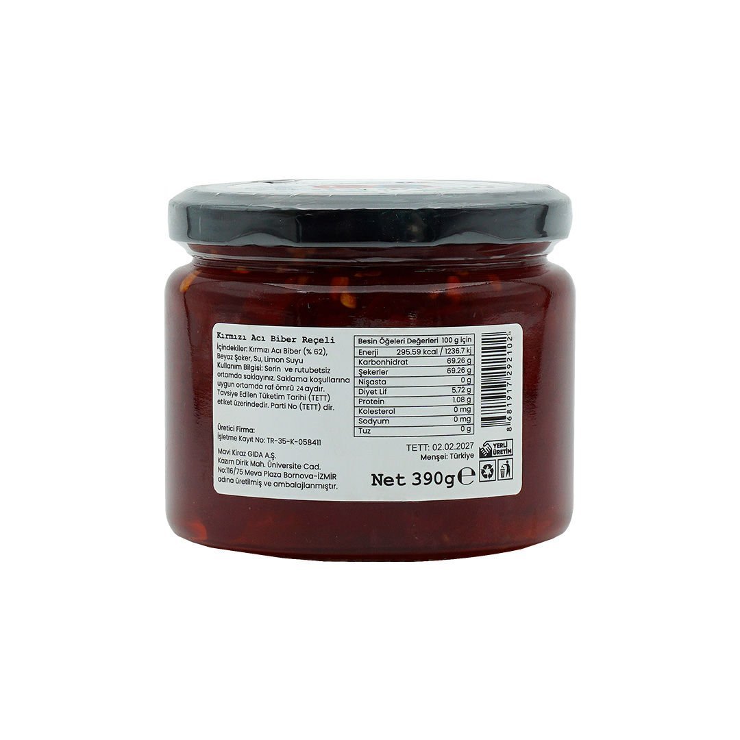 İçindekiler: Kırmızı Acı Biber, Beyaz Şeker, Su, Limon Suyu.