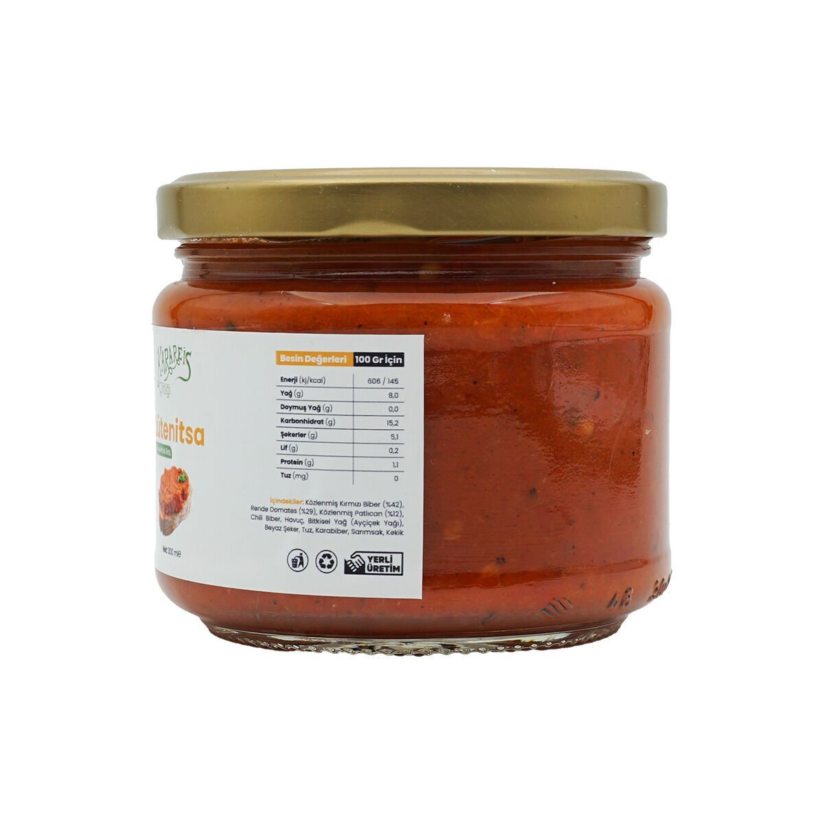 Domates Sos, Közlenmiş Kırmızı Biber, Közlenmiş Patlıcan, Havuç, Salça, Ayçiçek Yağı, Kırmızı Toz Biber, Tuz, Şeker, Sarımsak, Soğan Tozu